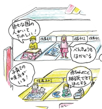 学習室やシェアオフィスなどの共有スペースを設け、子どもだけでなく、ステップ・アップをめざす女性たちも学習支援が受けられるようにしていきます。